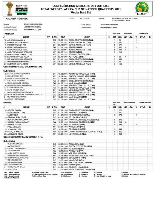 In the protest filed, Guinea claimed that Tanzania brought on a player whose jersey number was not on the official team sheet.