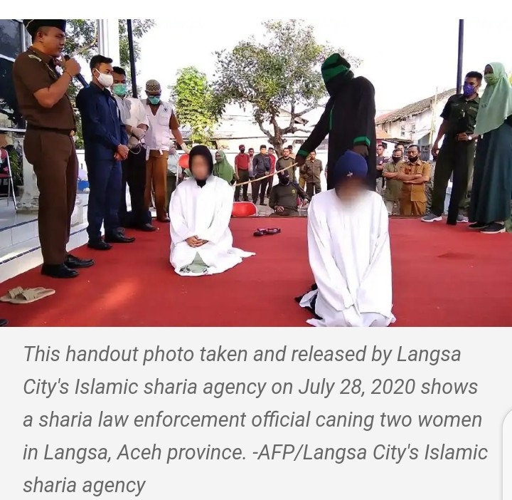 The punishment was handed down on Monday in Langsa city where dozens gathered to watch the pair get lashed, despite bans on crowds over coronavirus fears.